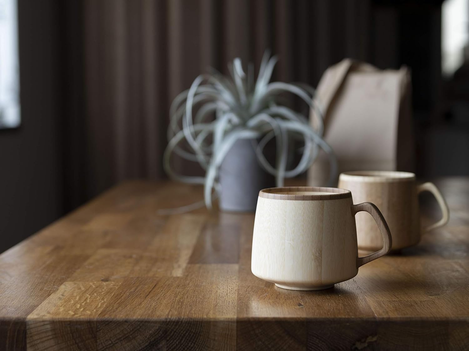台形のように作られたフォルムは、香りをより長く留めるための工夫が凝らされています。香り高いコーヒーやハーブティー、チャイなどを注ぐのがおすすめ。口あたりがなめらかで、手になじみやすいのは天然素材食器ならでは。やわらかい見た目や質感で癒されますよ。