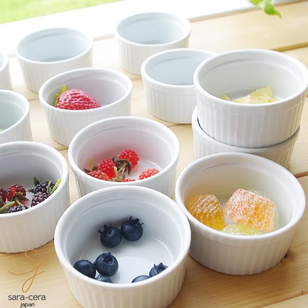 白く円形のココット皿は、料理の色合いを邪魔することのない定番アイテムです。直径7.5cmと小さめなので、デザート作りにぴったり。200度までオーブンに対応しており、カップケーキや蒸しパンなどのお菓子が作れます。