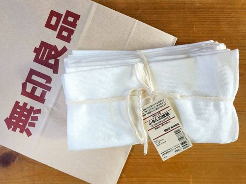 無印良品では、さまざまなタイプのふきんが販売されています。そのなかでもっともコスパの高い商品が「落ちワタ混ふきん」です。なんと、12枚で499円(税込)、1枚当たり42円以下とおどろくほどのコスパの良さ。
