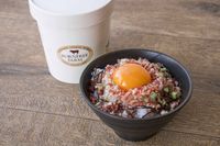 牛とろフレークと卵を白米にのせた丼