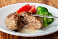 塩麹を使った格之進のハンバーグを焼き上げた断面図