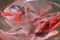 アラに熱湯をかける様子。