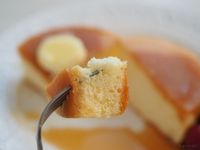 フォークに刺さったふわふわのパンケーキ