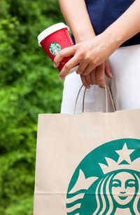 スターバックスのバッグを持つ女性