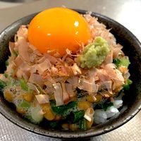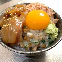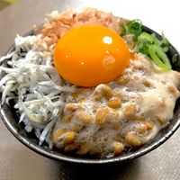 納豆卵かけご飯にしらすが乗っている丼