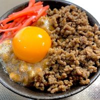 そぼろがのった納豆卵かけご飯