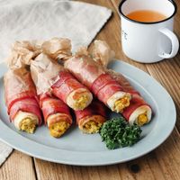 茶色のペーパーで持ち手を巻いた、周りのベーコンが綺麗なスティックパン