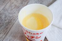 マクドナルドのマックシェイク®"プッチン"できないけどプッチンプリンカラメルソースをかけたところ