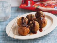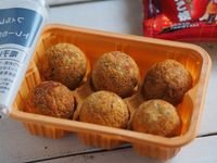 パッケージから出した銀だこのたこ焼とソース、かつお節と青のり