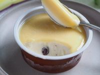 スプーンですくいやや溶けたローソンのコクバタアイスラムレーズン