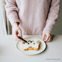お皿にのったねこねこ食パンのねこねこ食パン ほうじ茶2枚