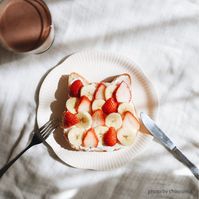 ねこねこ食パンの食パンにいちごとバナナをのせた食パン