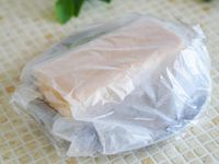 ラップとオーブンペーパーをかぶせたチーズケーキ