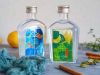 テーブルに置かれたノンアルコールスピリッツのん 洋:青い楽園、和:緑の秘境