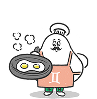 双子のめだま焼きを焼くシェフの格好をした白いFoodieくん