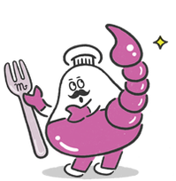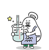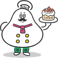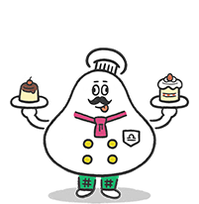 両手にお菓子をもつパティシエの格好をした白いFoodieくん