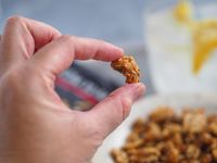オリエンタルクリスプ トムヤムカシューナッツを指でつまんだ様子