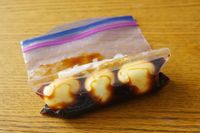 保存袋のなかで味玉を漬けている様子