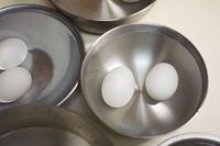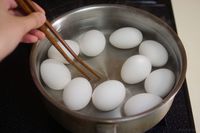 ゆで卵を冷水で冷やしている様子