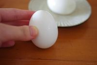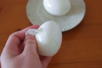 ゆで卵の殻をむいている様子