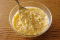卵を菜箸で混ぜる様子