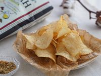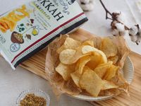 デュカ風ポテトチップスのパッケージと小皿に入ったデュカ