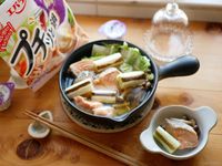 鮭の寄せ鍋と鍋つゆのパッケージ