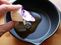 プチっと鍋を開封して黒い鍋に入れているところ