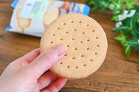 セブン-イレブンのバニラ香る クッキーサンドを持っているところ