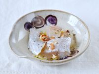 小皿にのせた小鯛ささ漬けのカルパッチョ