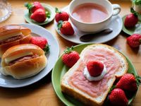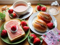 いちごトーストやいちごサンドなどのテーブルコーディネート