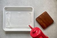桜チーズテリーヌの生地を湯煎焼きするところ