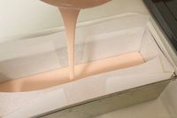 桜チーズテリーヌの生地を型に流している場面