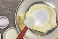 桜チーズテリーヌの生地に卵を入れたところ