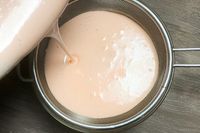 桜チーズテリーヌの生地を濾しているところ