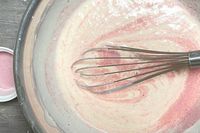 桜チーズテリーヌの生地に桜パウダーを入れたところ