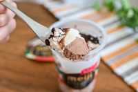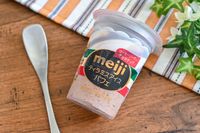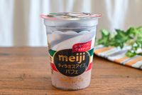 明治のティラミスアイス パフェをスプーンですくっているところ