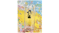 ゴッホの星月夜の絵とグラスに入った水色のカクテルが置いてある