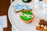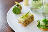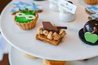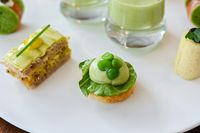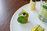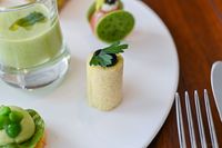 デルヴォー アフタヌーンティーのチキンカナッペ、グリーンアスパラガス、コリアンダー