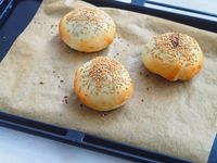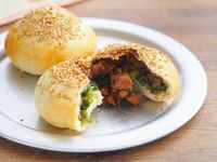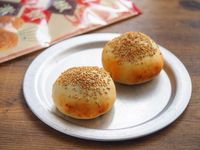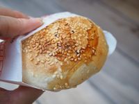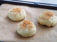 白ごまをふった焼く前の胡椒餅