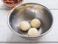 丸まった生地が3個入ったボウル