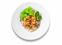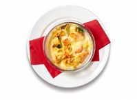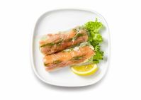 サーモンを使った料理やスクランブルエッグ、パンなどがテーブルに置かれている