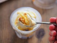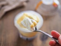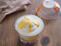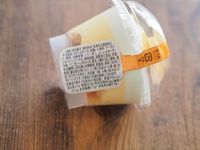 テーブルに置かれた生チーズケーキのカップ