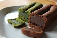 おさらの上に2種類のガトーショコラがのっている