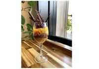 グラスの中にチョコレートとオレンジが入ったパフェが入って置いてある