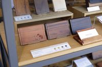 木製の名刺ケースが置いてある