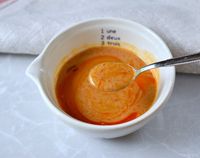 器に移してさじですくったビャンビャン麺のスープ