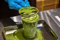 リンツのリンツ 濃い -天空の抹茶- チョコレートドリンクを作っているモニター
