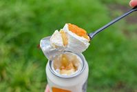Risotteria®︎GAKU渋谷のショートケーキ缶をスプーンですくっているところ