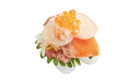 いくら、帆立、サーモンがのったお寿司がおいてある